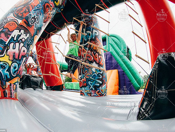 水上大沖關(guān)特征:水上大沖關(guān)是一組漂浮在水面上,色彩艷麗的障礙組合大沖關(guān)項(xiàng)目。水上大沖關(guān)項(xiàng)目針對(duì)不同人群進(jìn)行不同的關(guān)卡設(shè)計(jì),例如男生賽道將更注重力量與速度,女生賽道則在智慧與趣味上。
