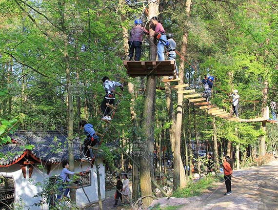 叢林探險項目特征:叢林探險(樹上探險)項目是在大樹之間設(shè)置的運動繩索、軟橋或繩網(wǎng)等有挑戰(zhàn)的項目,使人們在繩網(wǎng)上搖擺和嬉戲,或者通過從一棵樹到另一棵樹上擺動的吊橋??梢栽谶@里練習平衡,勇氣,耐力,力量和平衡。項目設(shè)置分為4個難度等級,可以使每一位游客都可以體會到?jīng)]有壓力去森林探險與好玩互動。項目通過特殊的安全裝備進行有效的防護。