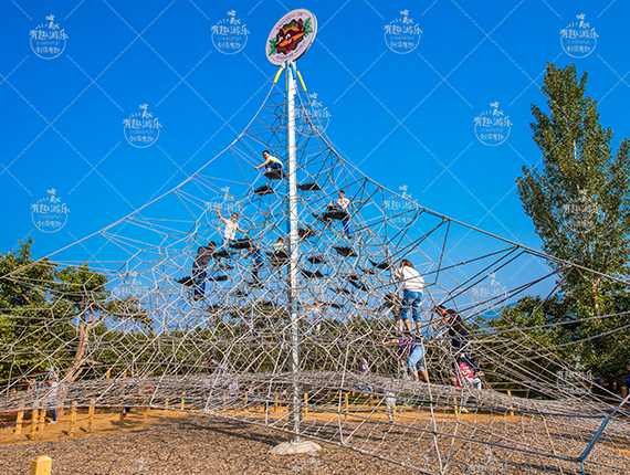 勇攀珠峰項目特征:勇攀珠峰是全方位攀爬設(shè)施,全部采用游樂繩編織而成。勇攀珠峰產(chǎn)品采用金字塔造型,可以從任何一邊攀爬至項目頂端,可多人同時攀爬,可以滿足團(tuán)隊和親子家庭等多人群使用的經(jīng)典游樂項目