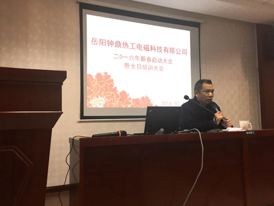 2016年2月15日正值大年初八,上午8時(shí)18分,清脆的鞭炮聲在鐘鼎熱工廠區(qū)響起,全體員工迎來了猴年的第一個(gè)工作日,公司為每位員工派發(fā)了開工大吉的紅包。9時(shí)整,2016年新春?jiǎn)?dòng)大會(huì)暨全員培訓(xùn)大會(huì)準(zhǔn)時(shí)開始,會(huì)上董事長(zhǎng)游述懷、常務(wù)副總屈志勇發(fā)表了熱情洋溢的講話。2016年公司將以市場(chǎng)為導(dǎo)向,創(chuàng)新求變,苦煉內(nèi)功,主動(dòng)適應(yīng)新常態(tài)、新發(fā)展,在新的一年中實(shí)現(xiàn)新夢(mèng)想、新跨越。