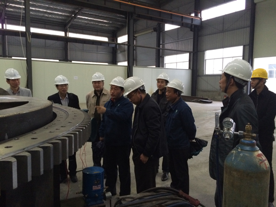 胡總一行參觀我公司正在制作的回轉(zhuǎn)式空氣預(yù)熱器